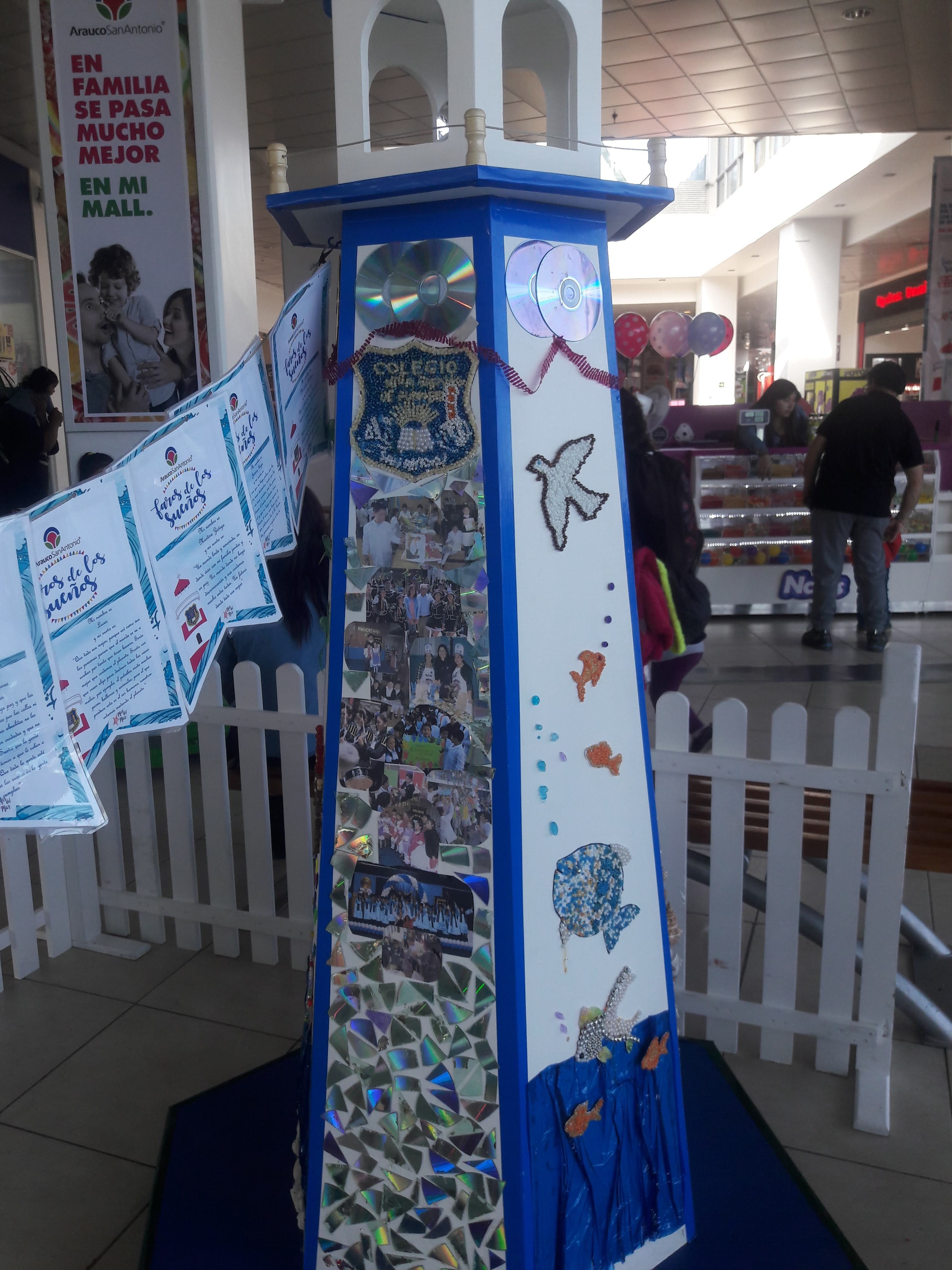 Nuestro establecimiento tuvo una destacada participación en el evento expositivo que se realizó en Mall Arauco San Antonio, en el cual los colegios invitados debían realizar un faro con materiales reciclables.