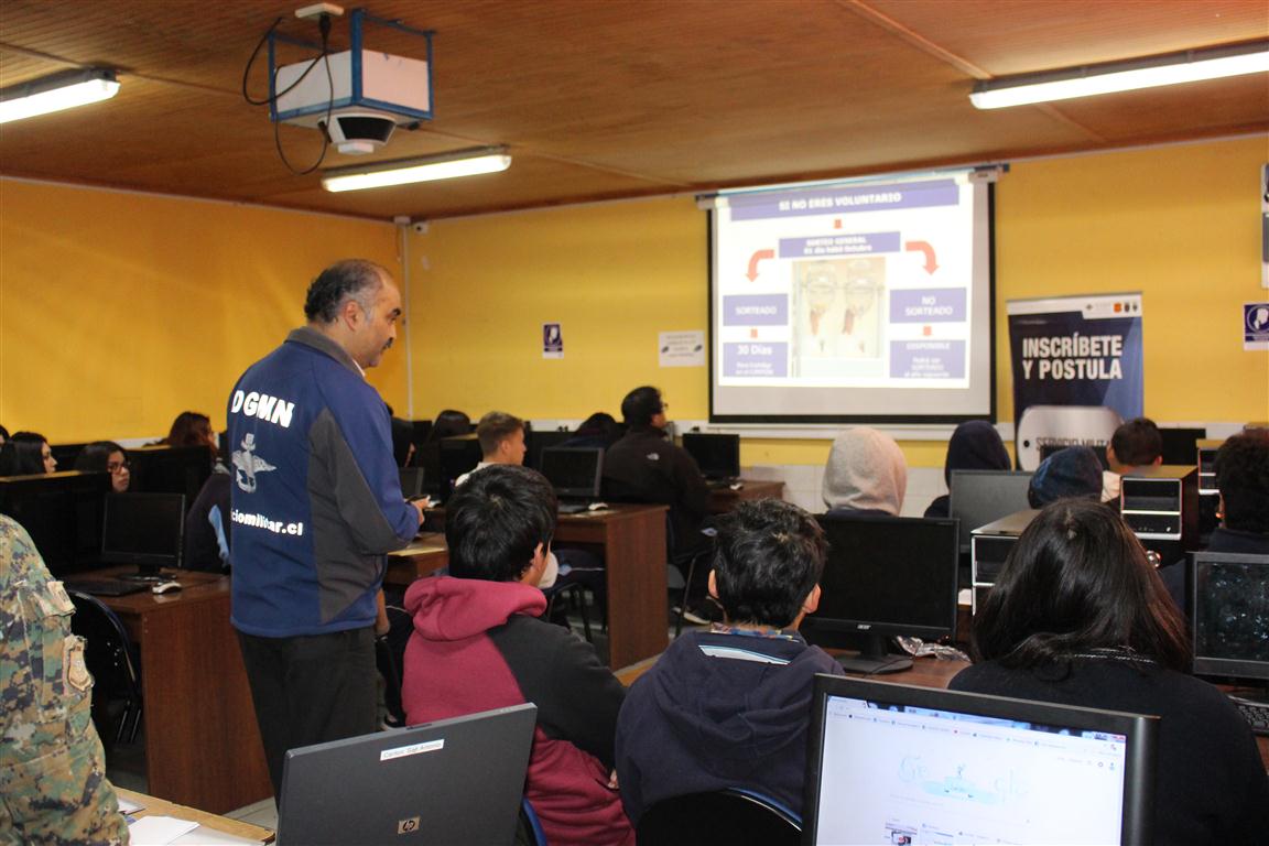 Una entretenida e informativa visita realizaron desde el Cantón de reclutamiento, para informar a alumnos de 3º y 4º medio acerca de los procesos de llamado.