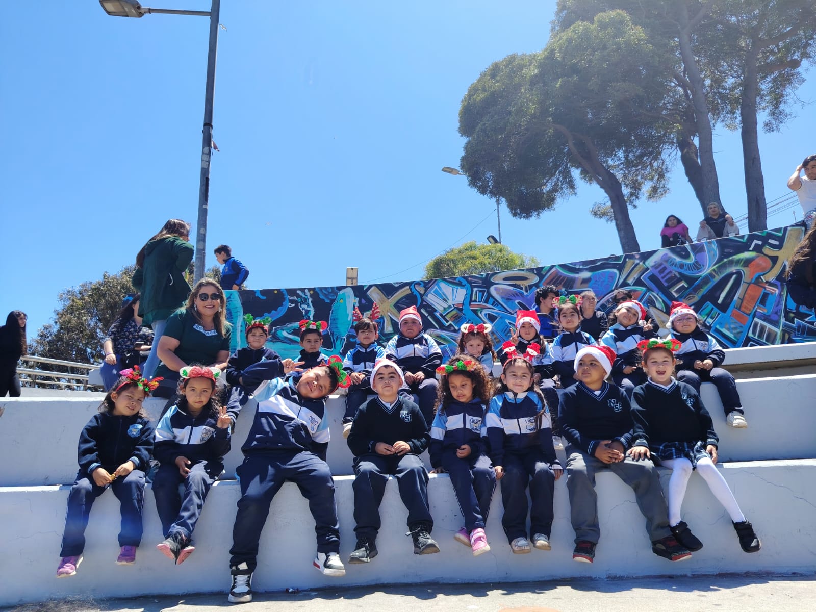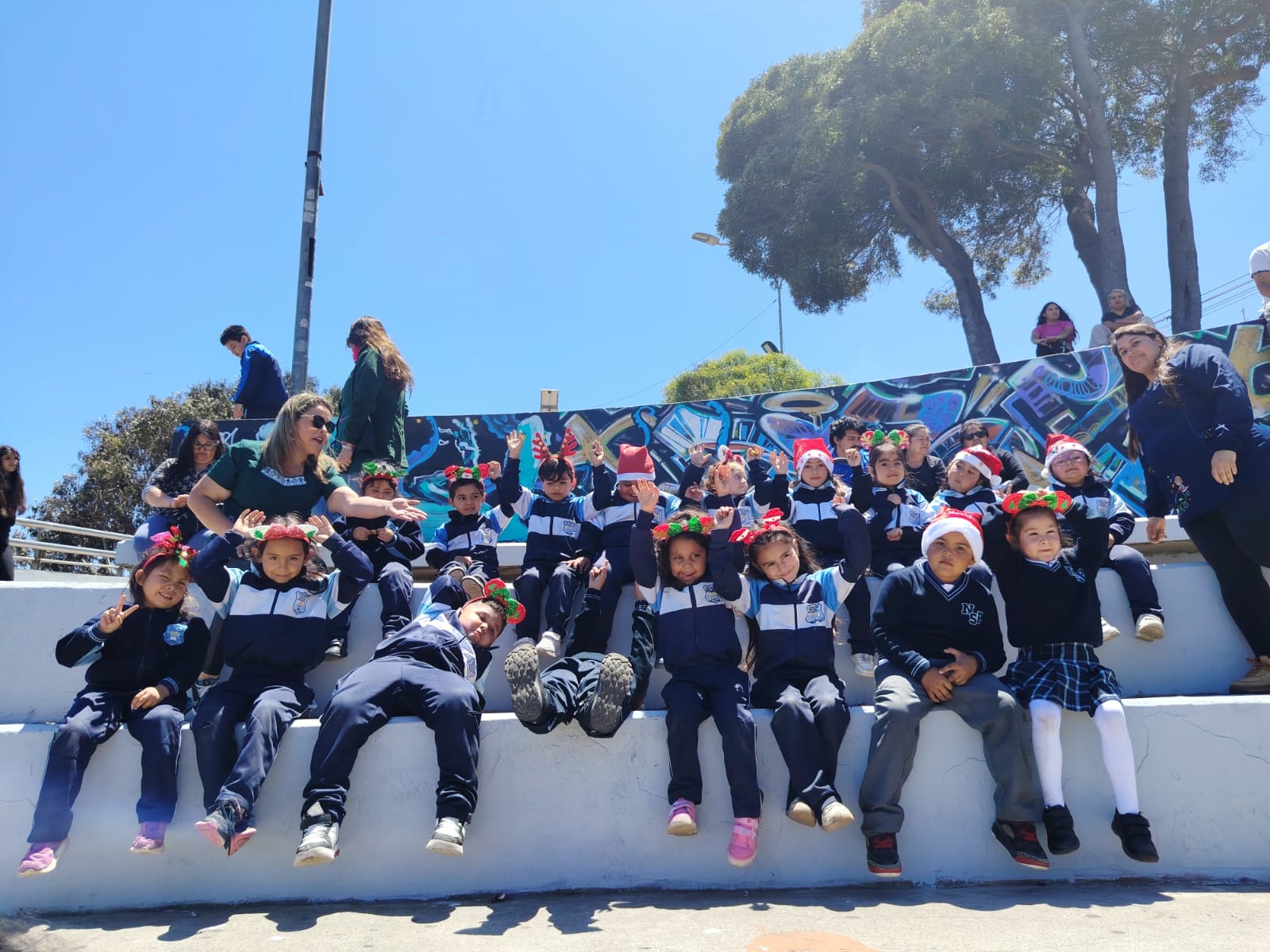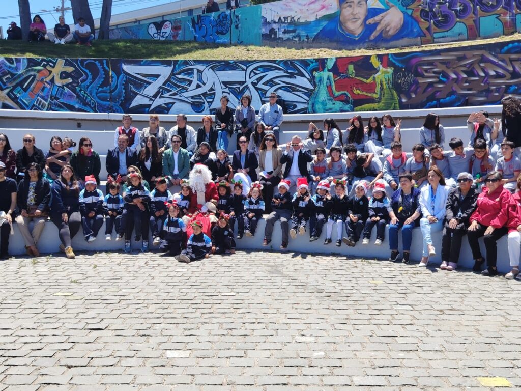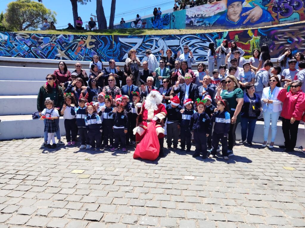 El día lunes 1 de diciembre los estudiantes de preescolar de nuestro establecimiento fueron invitados por la municipalidad de San antonio a la inauguración de las actividades navideñas del mes de Diciembre con título «San Antonio Abraza la Navidad» compartiendo la magia de estar juntos. Donde pudieron compartir con el viejito pascuero, con alcalde y consejales de nuestra Comuna, donde se cantaron bvellos villancicos navideños.