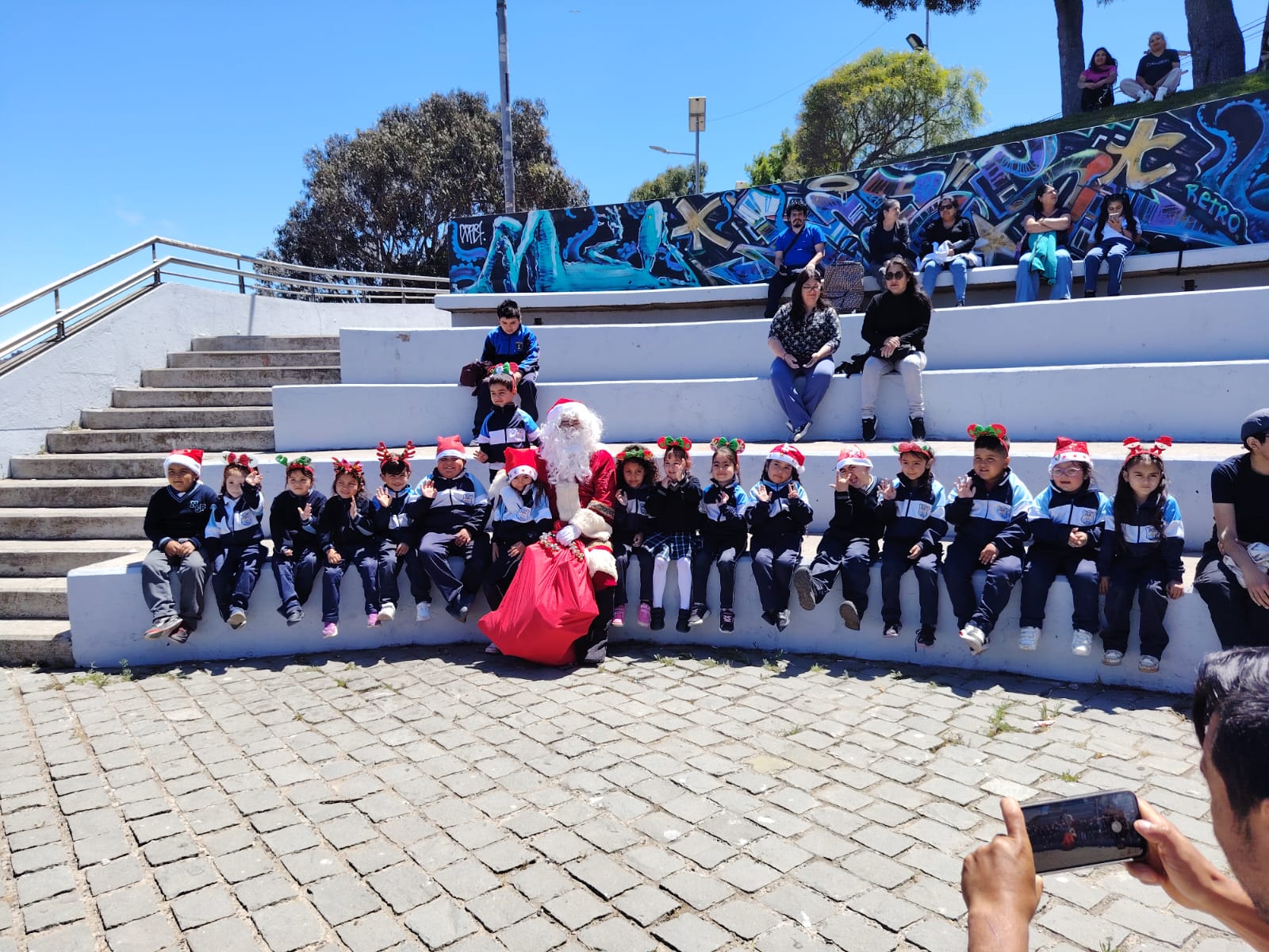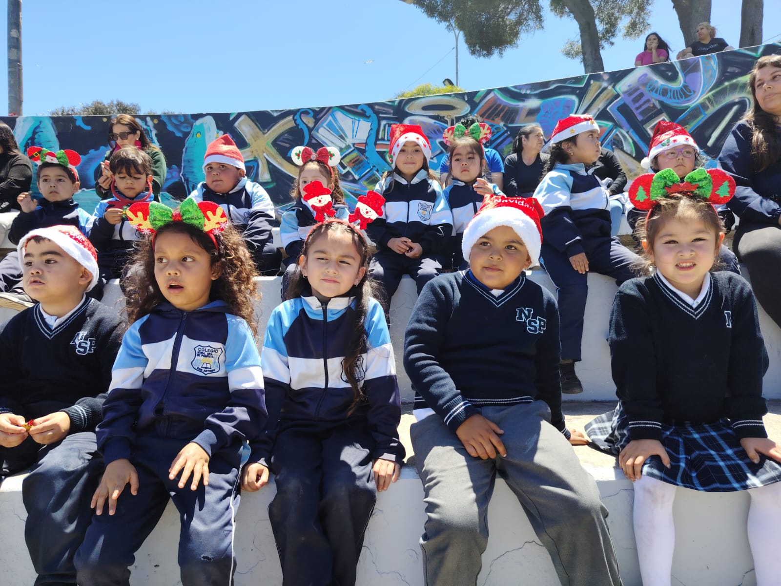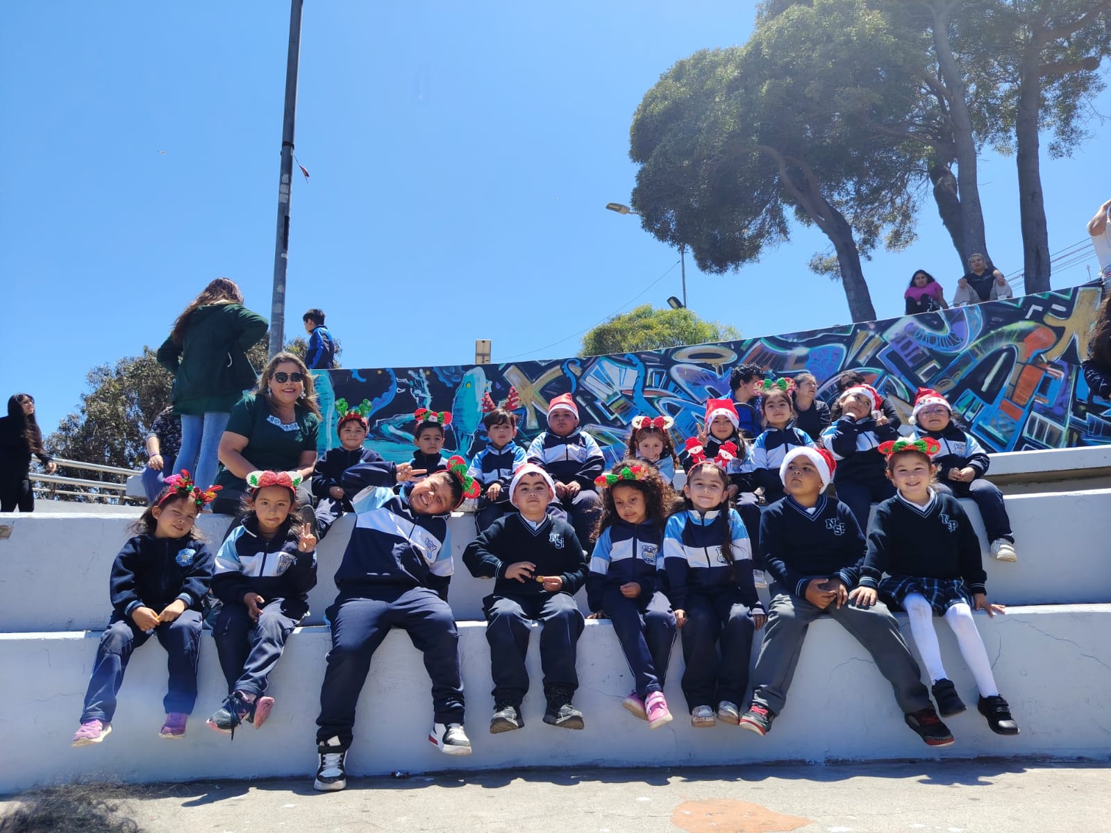 El día lunes 1 de diciembre los estudiantes de preescolar de nuestro establecimiento fueron invitados por la municipalidad de San antonio a la inauguración de las actividades navideñas del mes de Diciembre con título «San Antonio Abraza la Navidad» compartiendo la magia de estar juntos. Donde pudieron compartir con el viejito pascuero, con alcalde y consejales de nuestra Comuna, donde se cantaron bvellos villancicos navideños.