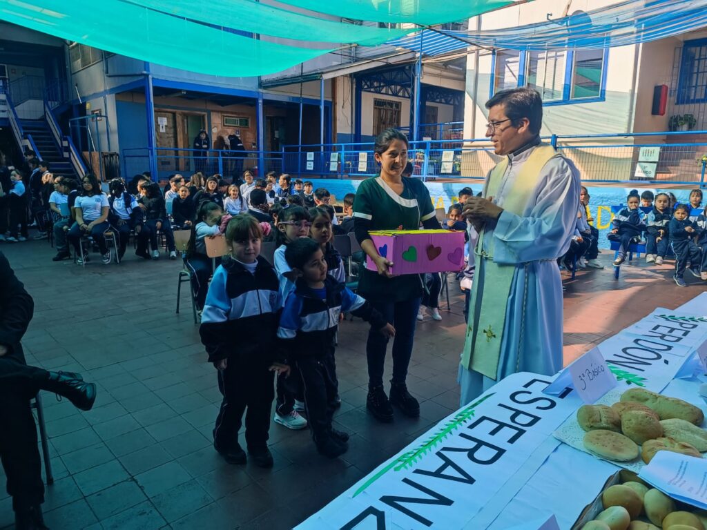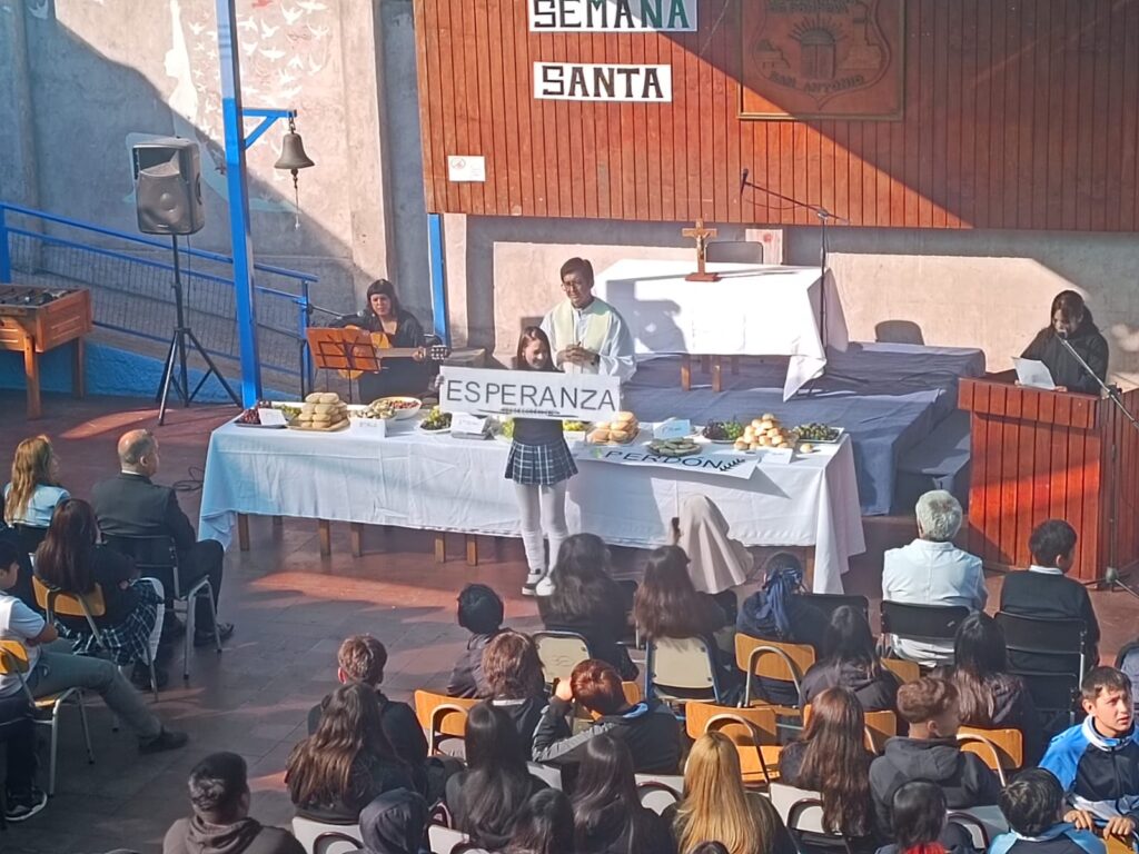 Misa efectuada el 3 de Abril junto al párroco de la Iglesia de San Antonio, Álex Ponce. Actividad que se realizó en ambas jornadas, junto a la gran participación de los niños y sus profesores, agradeciendo y creando un ambiente de cariño y coordialidad.